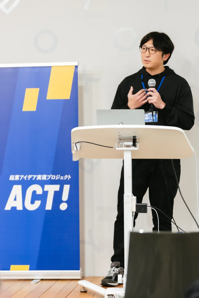 実は、プログラムが始まる前に自分で名刺を作って、「人を支える」という自分のスタンスを周囲に宣言していたんです。でも、具体的に何を事業にするかは模索中でした。「後ろのドアを閉める」つもりで動き出したものの、実際にどう進めていいか悩んでいた時にACT!を知り、「これはちょうどいいぞ」と直感しました。